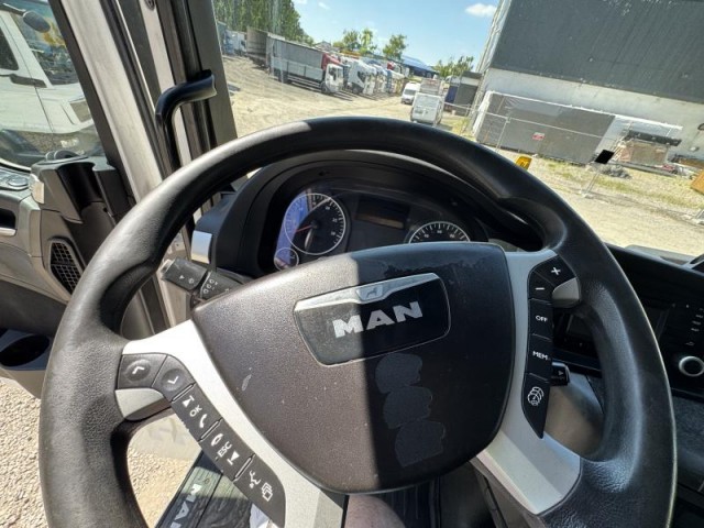 Truck Ausrüstung:aut. převodovka, 8 rychlostních stupňů, regulace výšky podvozku, posilovač řízení, aut. klimatizace, tempomat, plní 'EURO VI', AdBlue, palubní počítač, nastavitelný volant, hands free, el. okna, el. zrcátka, imobilizér, výškově nastavitelná sedadla, ostřikovače světlometů, mlhovky, otáčkoměr, autorádio, venkovní teploměr, vyhřívaná zrcátka, autochladnička, střešní šíbr man., střešní spoiler, boční spoilery, pohon 4x2, uzávěrka diferenciálu, pérování vzduch, dvojitá nádrž do 800l nafty, kabina vysoká, 2 lůžka, tachograf, motorová brzda